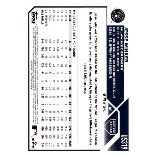 2023 Topps Update Series #US319 Jesse Winker NM-MT Milwaukee Brewers Baseball Card