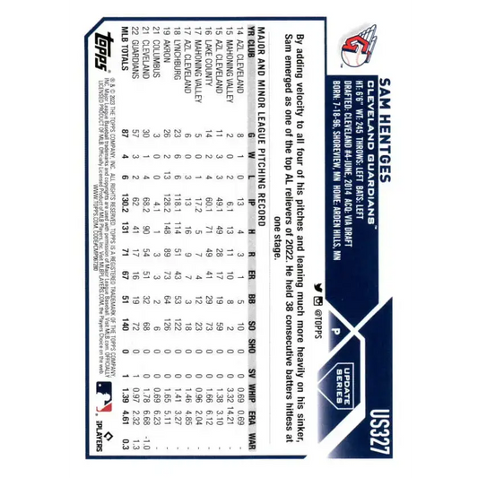 2023 Topps Update Series #US327 Sam Hentges NM-MT Cleveland Guardians Baseball Card