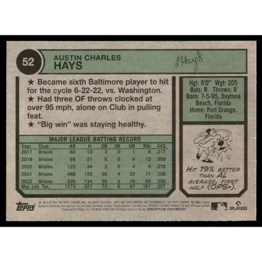 2023 Topps Heritage #52 Austin Hays NM-MT Baltimore Orioles Baseball Card