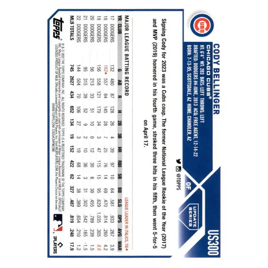 2023 Topps Update Series #US300 Cody Bellinger NM-MT Chicago Cubs Baseball Card