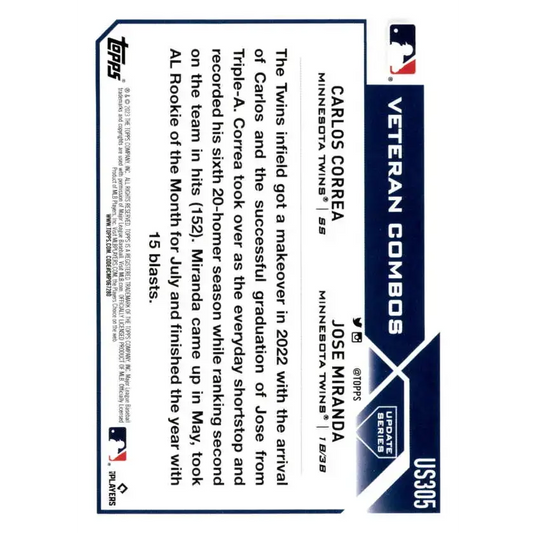 2023 Topps Update Series #US305 Jose Miranda/Carlos Correa NM-MT Minnesota Twins Baseball Card