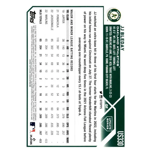2023 Topps Update Series #US330 JJ Bleday NM-MT RC Rookie Oakland Athletics Baseball Card