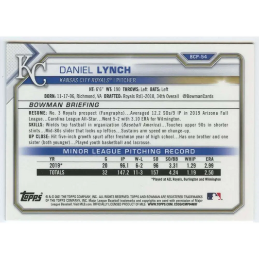 2021 Bowman Chrome Mega Box Mojo Refractor #BCP-54 Daniel Lynch NM-MT Kansas City Royals Baseball Card
