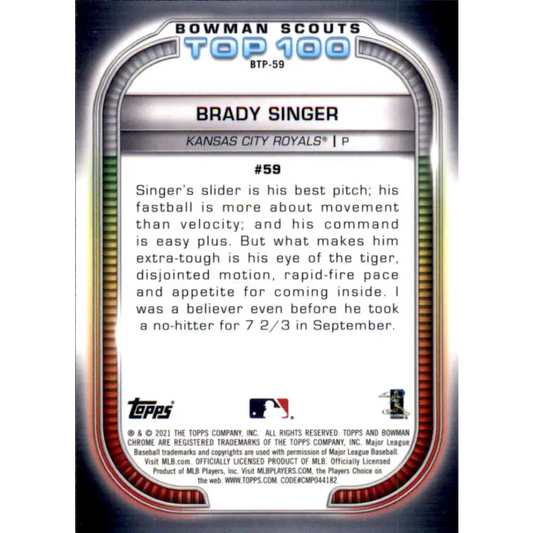 2021 Bowman Scout's Top 100 Refractor #BTP-59 Brady Singer NM-MT Kansas City Royals Baseball Card