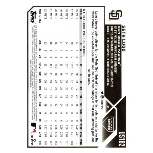 2023 Topps Update Series #US182 Seth Lugo NM-MT San Diego Padres Baseball Card