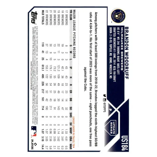 2023 Topps Update Series #US184 Brandon Woodruff NM-MT Milwaukee Brewers Baseball Card
