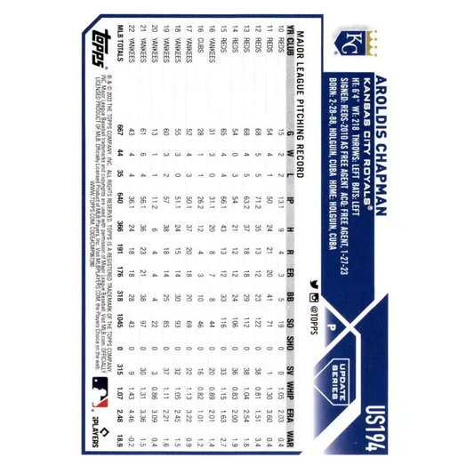 2023 Topps Update Series #US194 Aroldis Chapman NM-MT Kansas City Royals Baseball Card