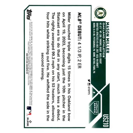 2023 Topps Update Series #US210 Mason Miller NM-MT Oakland Athletics Baseball Card