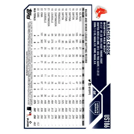 2023 Topps Update Series #US186 Narciso Crook NM-MT RC Rookie Boston Red Sox Baseball Card