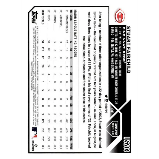 2023 Topps Update Series #US203 Stuart Fairchild NM-MT Cincinnati Reds Baseball Card