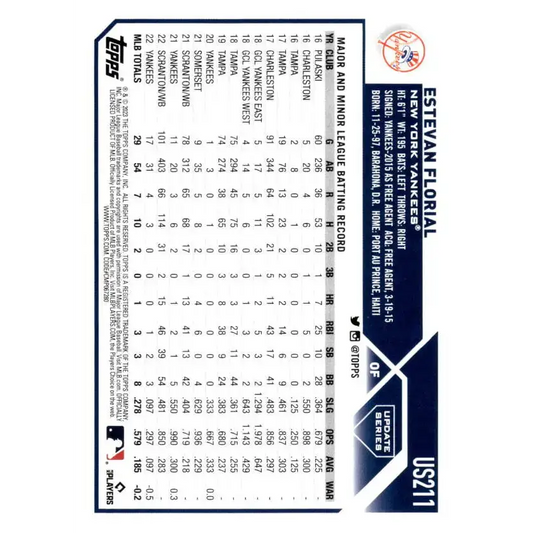 2023 Topps Update Series #US211 Estevan Florial NM-MT New York Yankees Baseball Card