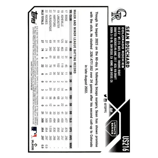 2023 Topps Update Series #US216 Sean Bouchard NM-MT RC Rookie Colorado Rockies Baseball Card