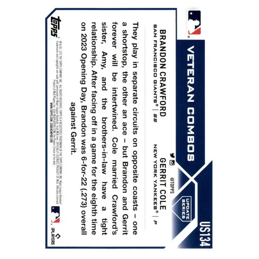 2023 Topps Update Series #US134 Gerrit Cole/Brandon Crawford NM-MT New York Yankees Baseball Card