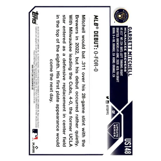 2023 Topps Update Series #US148 Garrett Mitchell NM-MT Milwaukee Brewers Baseball Card