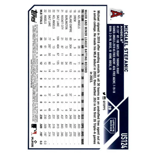 2023 Topps Update Series #US124 Michael Stefanic NM-MT RC Rookie Los Angeles Angels Baseball Card
