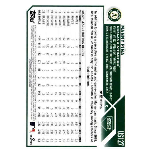 2023 Topps Update Series #US127 Manny Pina NM-MT Oakland Athletics Baseball Card