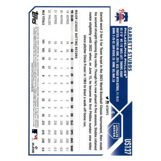 2023 Topps Update Series #US137 Garrett Stubbs NM-MT Philadelphia Phillies Baseball Card