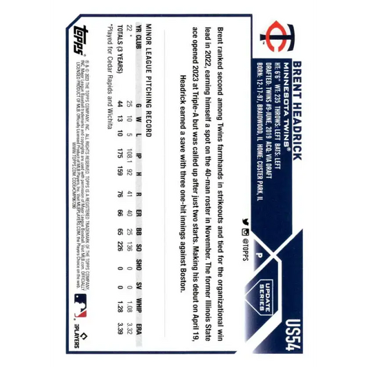 2023 Topps Update Series #US54 Brent Headrick NM-MT RC Rookie Minnesota Twins Baseball Card