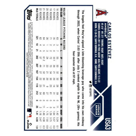 2023 Topps Update Series #US63 Carlos Estevez NM-MT Los Angeles Angels Baseball Card