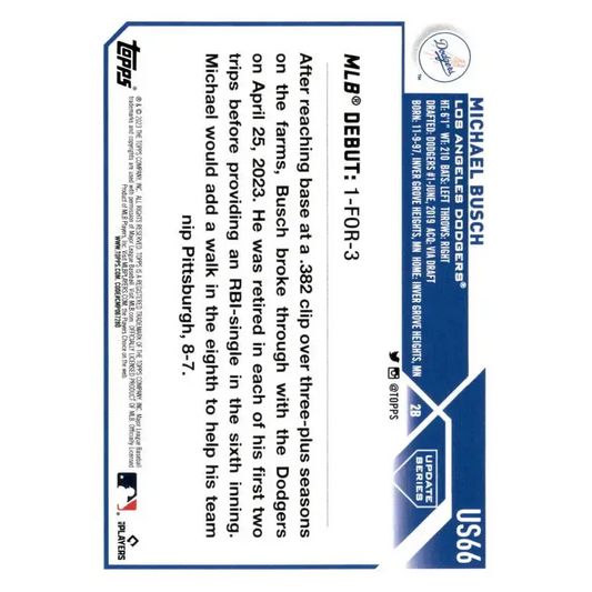 2023 Topps Update Series #US66 Michael Busch NM-MT Los Angeles Dodgers Baseball Card