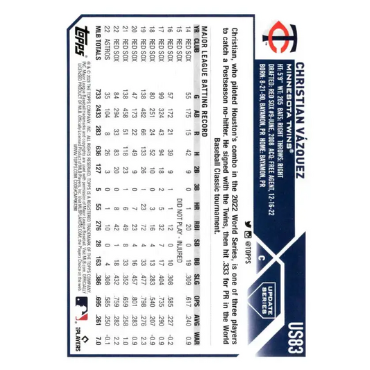 2023 Topps Update Series #US83 Christian Vazquez NM-MT Minnesota Twins Baseball Card
