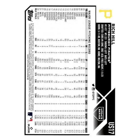 2023 Topps Update Series #US17 Rich Hill NM-MT Pittsburgh Pirates Baseball Card