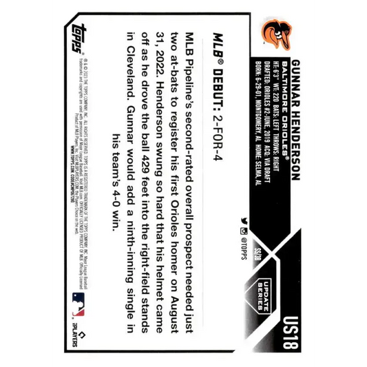 2023 Topps Update Series #US18 Gunnar Henderson NM-MT Baltimore Orioles Baseball Card