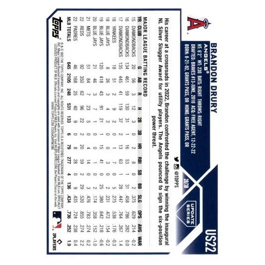 2023 Topps Update Series #US22 Brandon Drury NM-MT Los Angeles Angels Baseball Card