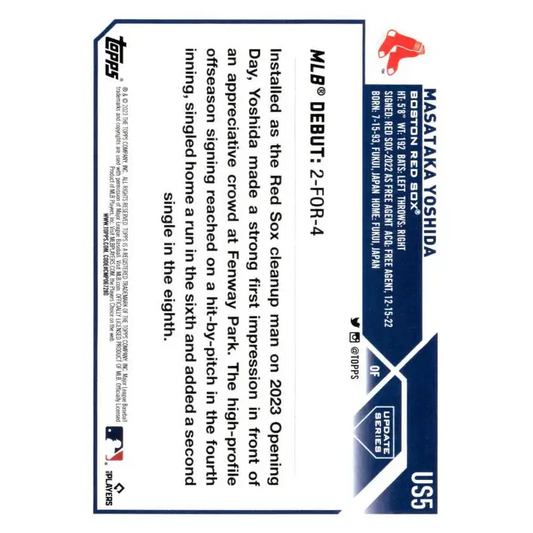 2023 Topps Update Series #US5 Masataka Yoshida NM-MT Boston Red Sox Baseball Card