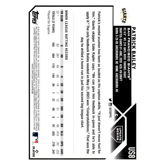 2023 Topps Update Series #US8 Patrick Bailey NM-MT RC Rookie San Francisco Giants Baseball Card