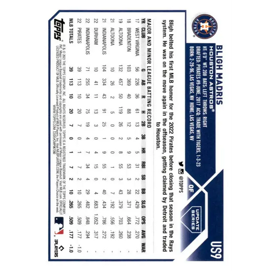 2023 Topps Update Series #US9 Bligh Madris NM-MT RC Rookie Houston Astros Baseball Card