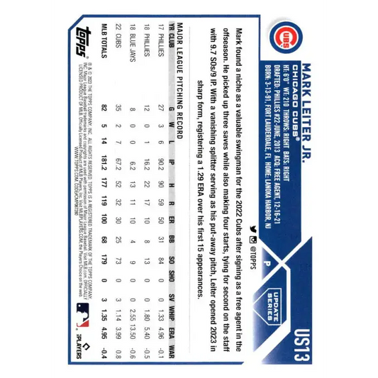 2023 Topps Update Series #US13 Mark Leiter Jr. NM-MT Chicago Cubs Baseball Card