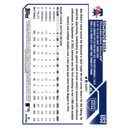 2023 Topps Update Series #US2 Edmundo Sosa NM-MT Philadelphia Phillies Baseball Card