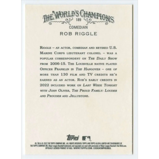 2022 Topps Allen and Ginter #189 Rob Riggle NM-MT Baseball Card