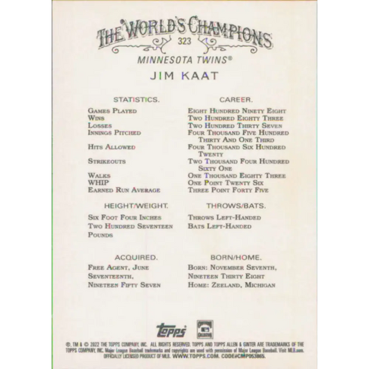 2022 Topps Allen and Ginter #323 Jim Kaat NM-MT Minnesota Twins Baseball Card