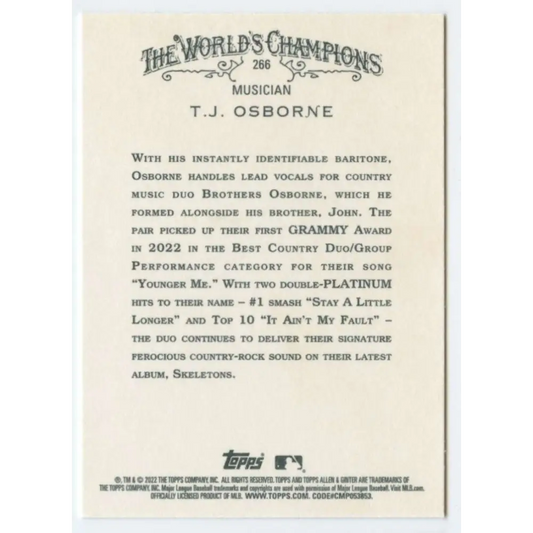 2022 Topps Allen and Ginter #266 T.J. Osborne NM-MT Baseball Card