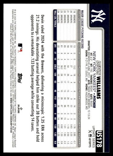 2025 Topps Update #US178 Devin Williams NM-MT Yankees ID:80025