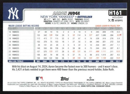 2025 Topps Holiday #H161 Aaron Judge NM-MT Yankees ID:79968