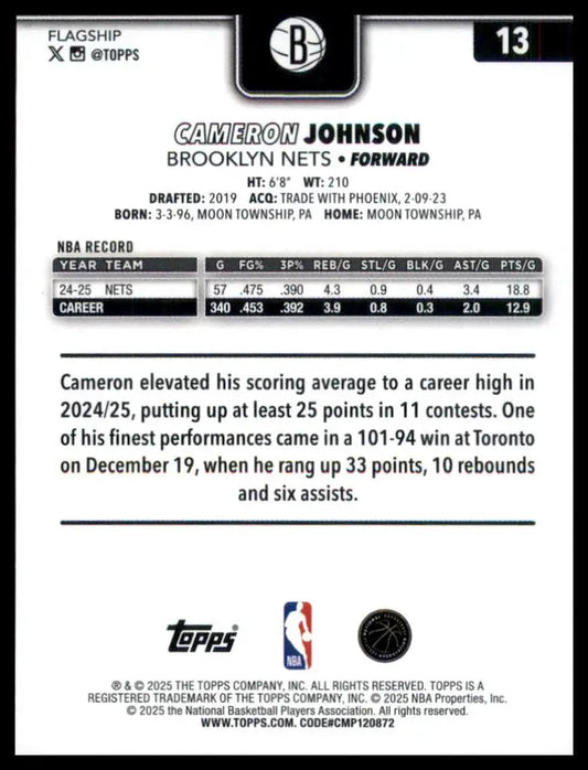 2025-26 Topps Cameron Johnson #13 Brooklyn Nets Basketball Card NBA Sports