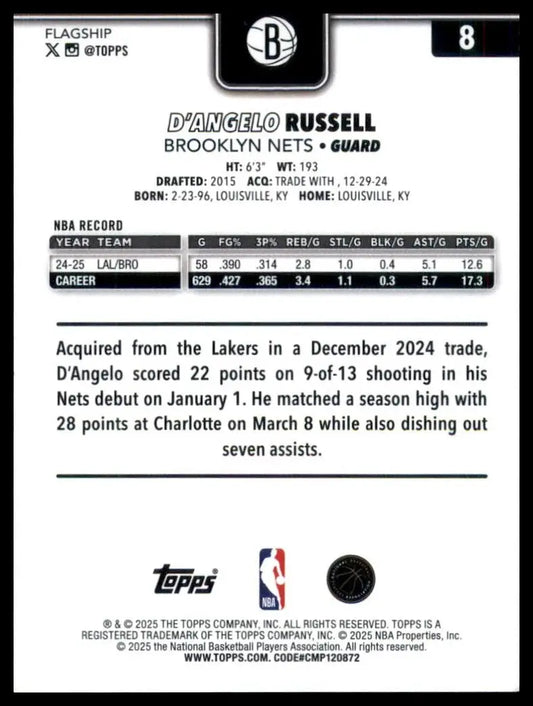 2025-26 Topps DAngelo Russell #8 Brooklyn Nets Basketball Card NBA Sports