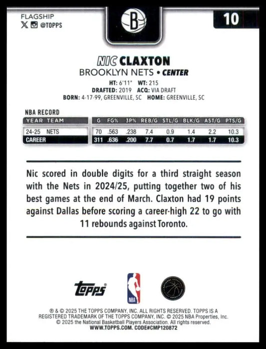 2025-26 Topps Nic Claxton #10 Brooklyn Nets Basketball Card NBA Sports