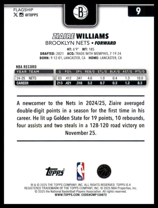 2025-26 Topps Ziare Williams #9 Brooklyn Nets Basketball Card NBA Sports
