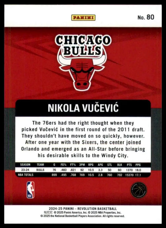2024-25 Panini Revolution Nikola Vucevic #80 Chicago Bulls Basketball Card NBA