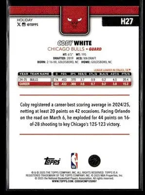 2025-26 Topps Holiday Coby White #H27 Chicago Bulls
