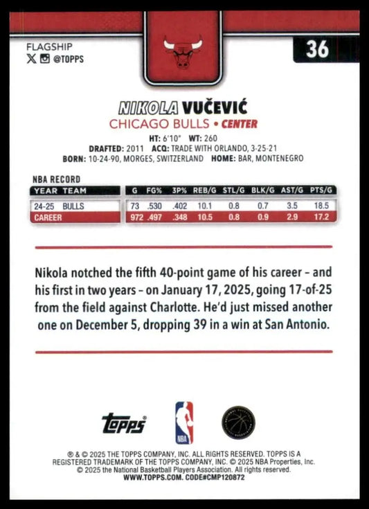 2025-26 Topps Nikola Vucevic #36 Chicago Bulls Basketball Card NBA Sports