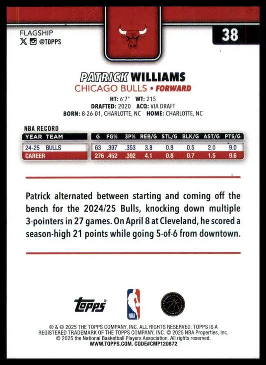 2025-26 Topps Patrick Williams #38 Chicago Bulls Basketball Card NBA Sports