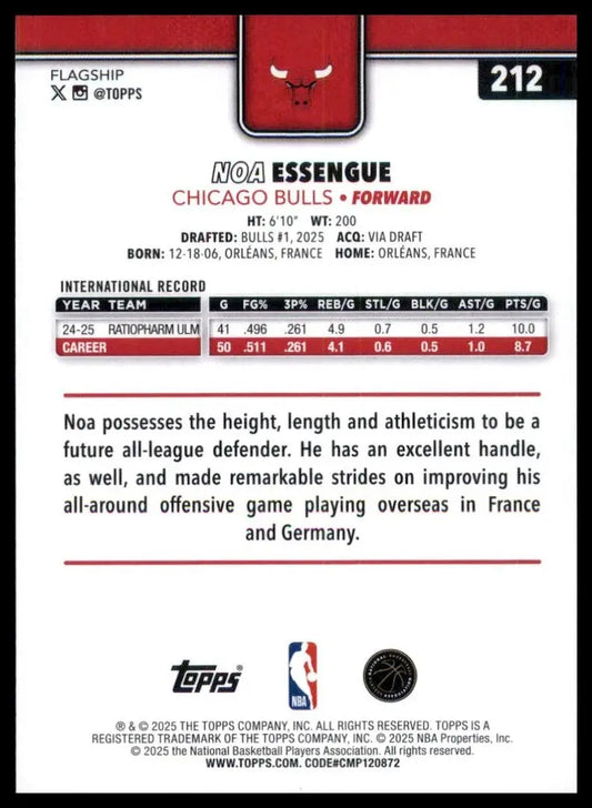 2025-26 Topps Season Tip Off Noa Essengue Rookie #212 Chicago Bulls Basketball