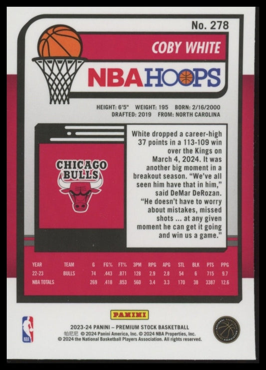 2023-24 Panini Nba Hoops Premium Stock Coby White #278 Chicago Bulls Basketball