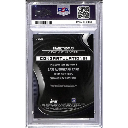 2022 Topps Chrome Black #CBA-FT Frank Thomas PSA 10 GEM MINT Auto Chicago White Sox