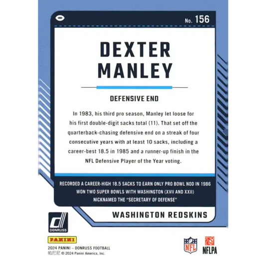 2024 Donruss #156 Dexter Manley NM-MT Washington Redskins Football Card